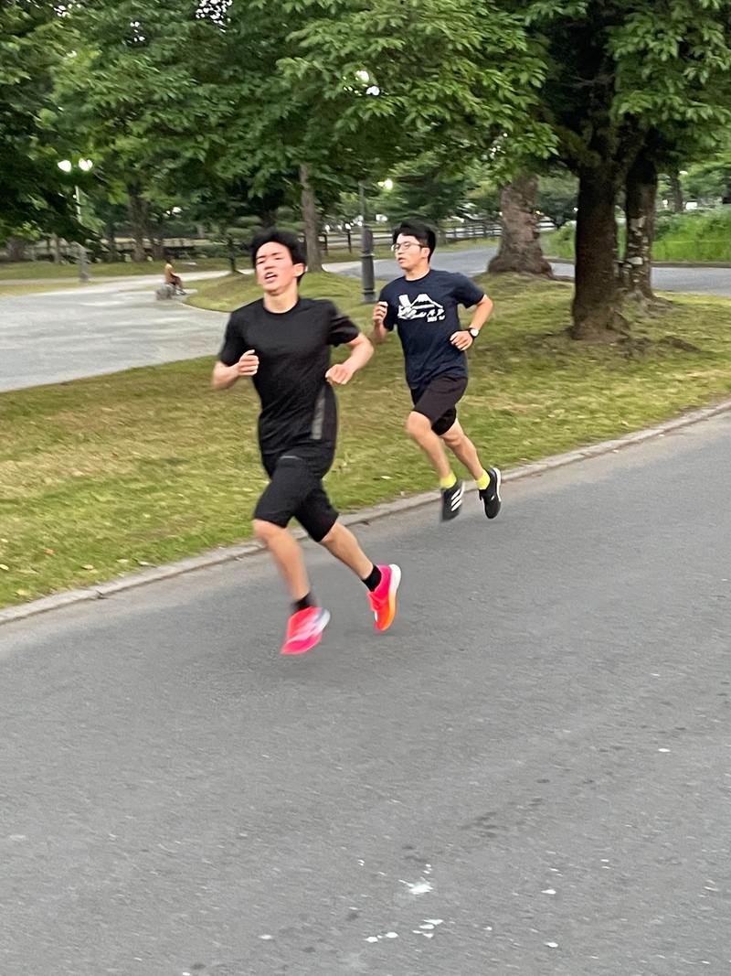 1回目は、東海ブロックの刺激練習として1kmを気持ちよく刺激しました(浅井強化委員長も一緒に走りました)。